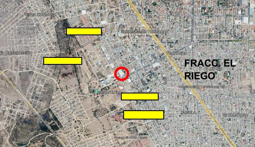 El inmueble se ubica sobre el cuerpo Sur – Norte de la Av. Baja California, en la zona existen fraccionamientos de vivienda social así como algunas naves industriales de empresas textileras, y muy cerca del Parque El Riego. Está fácilmente conectado hacia el libramiento Tecnológico – San Marcos.